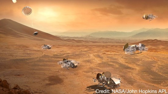 Figure 2 shows Dragonfly, an SUV-sized nuclear-powered autonomous quadcopter, set to launch from Earth in 2028. Yes, this engineering marvel is by any metric very cool. If all goes well, it will make landfall on Titan in 2034, and begin studying its surface chemistry for signs of life.