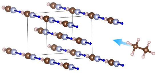 First, any basic chemistry course will tell you that polar and nonpolar compounds do not mix. Yet in this article, we combine data from cryogenic experiments with quantum mechanical calculations to show that hydrogen cyanide, HCN – a molecule more polar than water – can form co-crystals with methane and ethane, two of the most nonpolar substances known. At sufficiently low temperatures, these molecules defy conventional chemistry! They manage this feat because the HCN crystal is differently structured in different directions. In it, all the highly polar (and very toxic) HCN molecules line up in neat hydrogen-bonded chains, reaching from one end of the crystal to the next. Between these (polar) chains are nonpolar cavities, where small nonpolar molecules such as methane and ethane can enter (Figure 1).